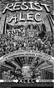 The American Legislative Exchange is meeting in Salt Lake this week to come up with ways for the “big guys,” — American Tort Reform Association, Chemical Manufacturers Association, Americans United for Life, ExxonMobil, Koch Companies Public Sector, the NRA, etc.—to have their way with legislatures across the nation.