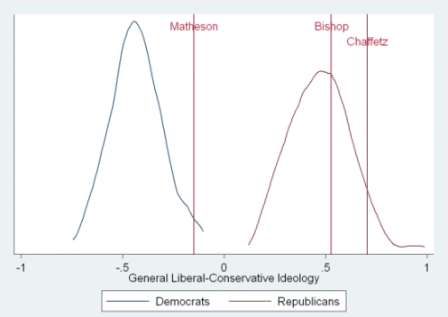 At least that’s what a study done by a Brigham Young University egghead has found. Adam Brown, a research fellow with the Center for the Study of Elections and Democracy, threw some science at the usual political yammering about Matheson—who is under threat of being deposed by Republican Mia Love. No data on Love, who remains a cypher herself, a Haitian-American anchor baby who is running to the far, far right.