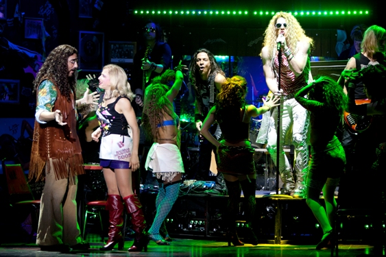 Rock of Ages’ success depends primarily on the audience’s love of the music, with dozens of familiar hits delivered throughout its two acts by characters ranging from Sherrie (Shannon Mullen), the wannabe actress who just showed up in LA, to aspiring rocker Drew (Dominique Scott), to grizzled hippie club owner Dennis (Matt Ban). But a simple-yet-satisfying story gives those songs a solid footing that makes Rock of Ages much more than simply a cock-rock revue.